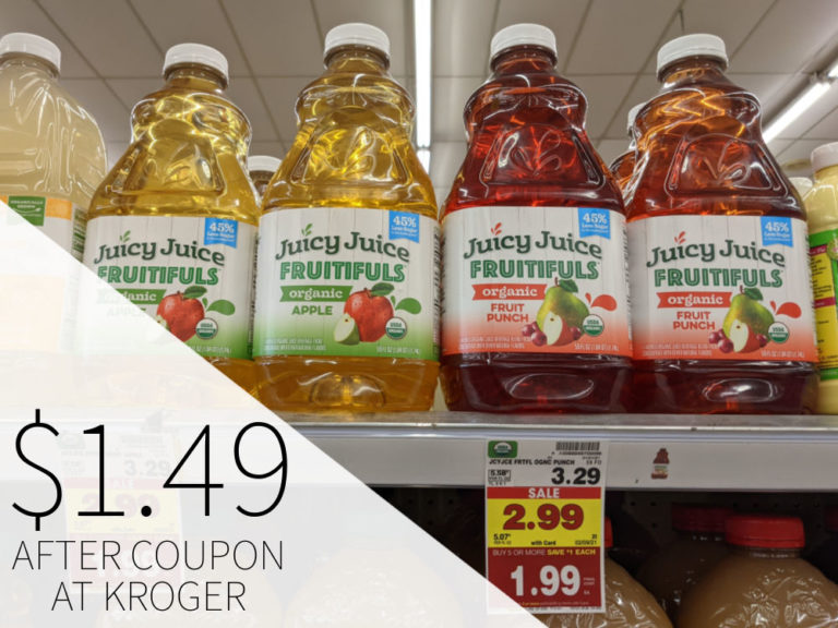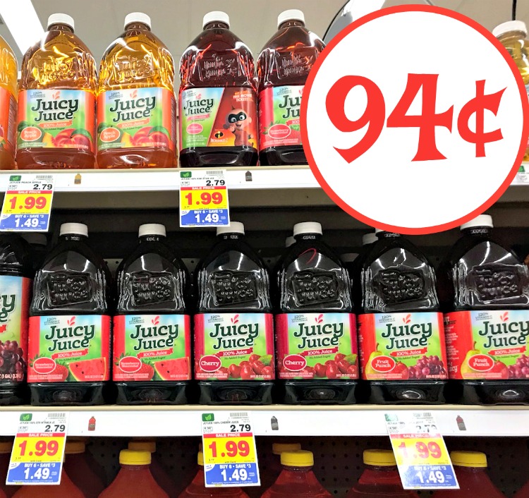 *NEW* Juicy Juice Coupon + Kroger Deal!! | Kroger Krazy $1.00/3 Juicy Juice Products . To access this coupon, I had to sign in and update my info. Then re-click this link to get to the page with the coupon link again. Kroger Deal: Buy (3) Juicy Juice (4-8 ct or 64 oz) - $2.49 each Use $1.00/3 Juicy Juice Products printable Final cost is $2.16 each. See all of this week's Kroger deals. $0.75 Off Any One Juicy Juice Product Printable Coupon ... Made with 100% fruit juice, Juicy Juice equals half a cup of fruit for every 4oz! Packed with vitamin C and zero sugar, Juicy Juice is an excellent choice for your family! Save with this Printable Coupon! Just sign-up for their newsletter and the Printable Coupon will be emailed to you! $0.75 Off Any One Juicy Juice Product Printable Coupon!