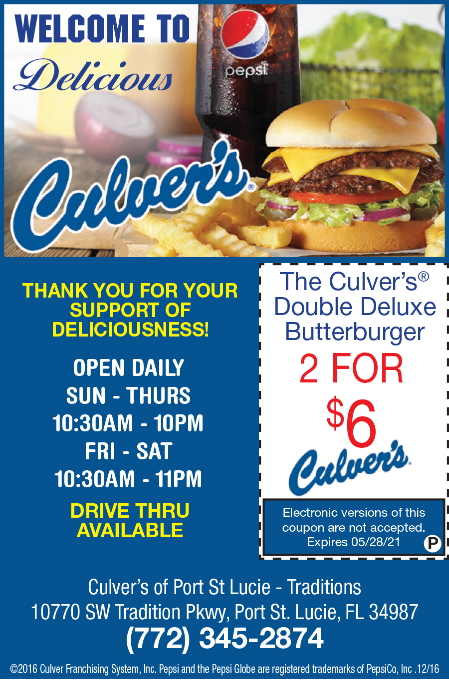 Culver's Coupons & Discounts September 2022 With your Culvers coupon in one hand, you could have a discounted, delicious burger in the other, just pick and deal and head to your local restaurant today. Snap up the best savings with Culvers Culvers opened in 1984 in Sauk City, Wisconsin, focusing on providing customers with home cooked quality food that is always fresh, never using frozen ...